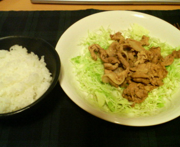 お好み焼き用に買って来たキャベツがまだ残ってたけど、お好み焼きは飽きてしまったので、きょうは生姜焼きにしてみました。味見しなかったら味が足りなかったので、あとから醤油かけて食べました。