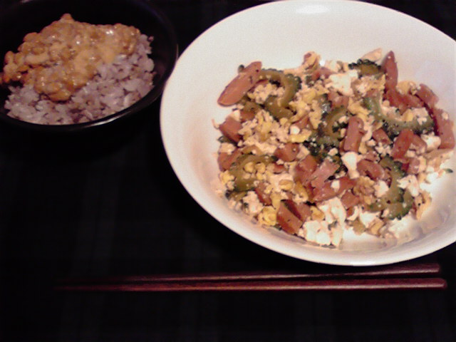 再度帰宅すると、今日は予定通りゴーヤチャンプルを作りました。今回はSPAM缶を買ってきたので本格的です! ちょっとゴーヤに対してSPAMのが多い気がしましたが、おいしく出来ました。明日の弁当のおかずはこれだけです。