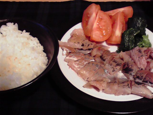 「ぜいご」を取るところまでは順調だったのですが、焼魚用と刺身用の手順が錯綜し、かつ生ものなので手際よく調理しなければならないというプレッシャーから、手順もムチャクチャ、鯵の身もボロボロに。やっぱり見るだけじゃなく実習しておくべきだったとちょい後悔。刺身にしかならないような状態でしたが、半分は形が残ったので安心しました。あと地味で目立たないけど、ほうれん草のおひたしも初挑戦で、ただ茹でるだけだと思っていたより苦戦しました。