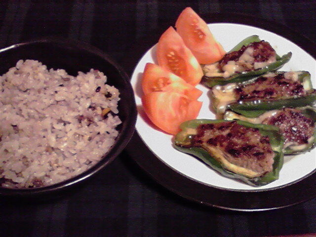 前に作った時は何だか大量で、食うのが大変だったイメージがあるので挽肉は控えめに。そしたらピーマン5個分用意したのに2個分余ってしまいました。この辺に経験不足が如実に現れちゃいますね。味付けはハンバーグスパイスのみだったので少々物足りない気がしましたが、足りないくらいがきっといいんでしょう。ひさびさのピーマンもおいしかったでっす!