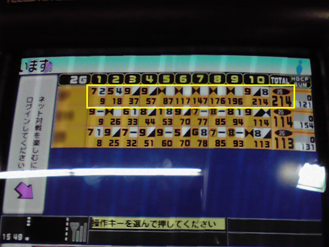 1ゲーム目はまずまずの滑り出しで2ゲーム目。1,2フレームはダメだったけど、3フレーム目以降、5連続ストライクなどを絡め、未踏の200up! 最終的には214で終了。もうこの記録は超えられないかな? だって5連続中は、コースがずれたのにストライクという神がかり的だったので、実力以上が出た気がするからね。まー記録は記録。スコア表は大事にとっておきます!