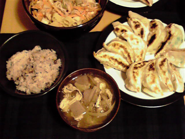 次は餃子。まず今回は春キャベツが残っていたのでキャベツをベースに、ニラ、生姜、ニンニクを細かく刻み混ぜ合わせる。この時点でかなり多くなってしまったので、挽肉は極端に控えめに。しかし野菜は生のままだったので、かさばってあまり皮に詰められませんでした。その結果、焼くと中がしぼんでしまい、皮ばっか食ってる印象に。下味がうすかったのか、生っぽかったのか、量が多かったのか、とにかくニンニク強烈な餃子でした。