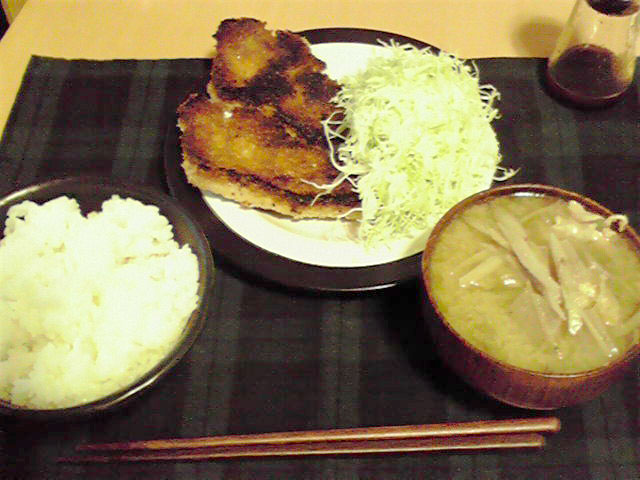 といっても、フライパンに少し油を多めにひいて焼くといった感じですが。火の通りを案じて時間かけたら少し焦げてしまいました。ドレッシングもつくってキャベツを山盛り食べたし、たまには揚げ物もいいでしょう。てか金曜・土曜は食い過ぎたため、今日はひかえるつもりだったのにぃ…