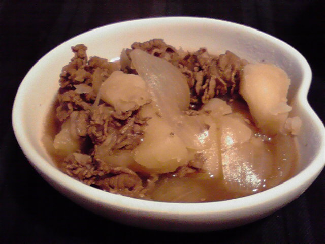 いまだかつてこんなマズい肉じゃががあったでしょうか? 拷問に耐えるべく食べてたんだけどたまりかねて、鍋に残っていた分に醤油と砂糖を少々追加してさらに煮込む。で多少味はついたもののマズさは変わらず。やっぱ煮物は難しいわ。リベンジがあるかは微妙な感じ。