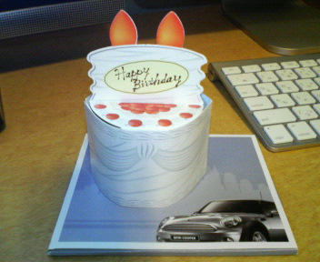 一日ごろごろしてた上に、3食めいっぱい食って、マリオネットのケーキまで食ったら、もはや体重計に乗れません。そういや日頃ジムに通っている父もメタボの仲間入りをしたらしいので気をつけなきゃ。