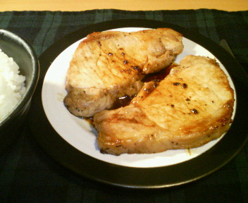 我が家では稀な厚い肉なので、下味にも気を使う。頂き物の粗塩を両面いっぱいにまぶし米が炊けるまで放置プレイ。バターを溶かしたフライパンにのせたらブラックペッパーと醤油を少々。味がしないと美味しくないので、今回は鳥正の焼き鳥のタレのあまりをベースにソースを作ってみました。