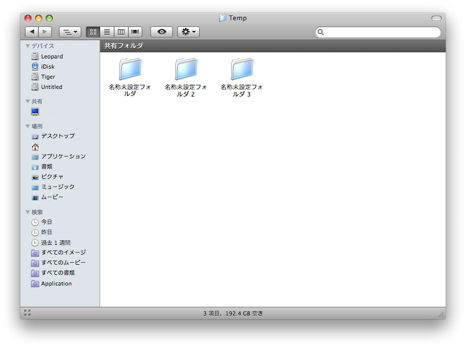 デフォルトフォルダアイコンは、Macintosh HD/システム/ライブラリ/CoreServices/CoreTypes.bundle/Contents/Resources/GenericFolderIcon.icns にあるので、こちらをTigerのフォルダアイコンに変更。ただし、バックアップを取るためアクセス権の設定を変更してもリネームできなかったので、別フォルダにバックアップを取り、上書きコピーしたら大丈夫でした。こうなるとほかの特殊フォルダ(フォルダに絵が描いてあるやつ)も面倒だけど変更したいなぁ。