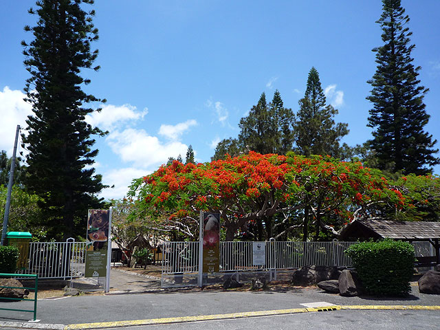 翌23日は自然公園に行くためホテル前のバス停にてプチトレインを待っていたのだが来ないので路線バスを乗り継いで山の麓へ。そこから遠いのは分かっていたのだがまったく人気の無い山道なので少々不安で歩き始めたら、程なく子供連れのお父さんが車に乗せてくれ公園の前まで乗っけてくれました。公園はすいていて国鳥カグーなどをのんびり見学できました。