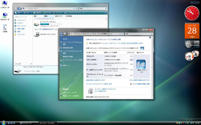 期待のスコアは4.8。2GBのメインメモリもVistaには物足りないようです。もちろん動作は快適ですが。それにしてもWinとMacではキーが違う上に、Wireless Keyboardはキーが少ないのでPrintScreenすらできない。やっぱWiredにすべきだったのか?