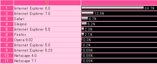 いくらCSSが正しく表示されないとはいえ、8割がIE。WinユーザはまだまだIEが多いよね。