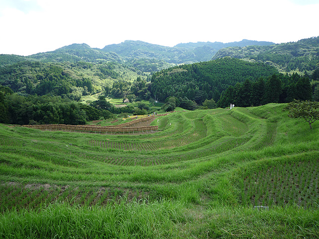 仕方なく目的地にあと10分のところで、としまや弁当で弁当を食って目的地到着! ナビで出ないので適当にマークしたけど、無事見つかってほっと胸を撫で下ろしました。写真のように山の斜面に細長い棚田が広がっていて見事でした。