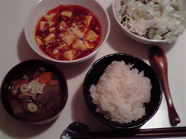 辛すぎの麻婆豆腐と味薄めの豚汁でしたが、珍しく3品作れたのでまー自己満足かな。「おいしい」と言ってくれるのはありがたいですね