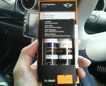 ついでに前から購入を検討していた、カップホルダーと携帯ホルダーも購入。それからスペースブルーのタッチアップペイントも売っていたので購入。もちろんまだ無傷だけど、オートバックスなどには売ってないので備えあれば憂いなし!カップホルダーと携帯ホルダーの写真はこちら