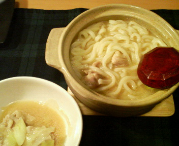 夕食は今シーズン初の鍋物。ラッキーにもチューブ入り味噌(だし入り)が買えたので、大好きな味噌味にしました。具は葱と鶏もも肉だけですが、むしろメインは締めのうどん。味噌煮込みうどんはあったまるし最高!つい、つゆを全部飲み干してしまいました。