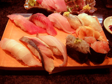 最終目的地⑧沼津魚がし鮨港店では、ガイドブックお勧めの「近海」(写真下)+本マグロと鯵の二点盛にぎり単品サーモン・ホタテまで食べちゃいました。遊びに行ったときくらいは豪勢にね!でも見境無く食べたのでお腹パンパン。帰りは沼津より東名をブッ飛ばして帰ってきたのであっという間でした。今日はMINIの運転にも慣れてきたし、まずまず充実のドライブ、全走行距離347kmでした。