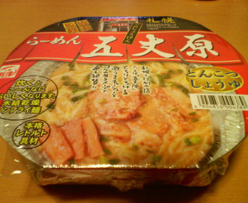 札幌へ行ったときに訪れたのに、あいにく定休日で涙を飲んだ「らーめん五丈原」。たくさんある拉麺屋の中でこの店を選んだのは、やはり三國志マニアだからであろう。そのらーめん五丈原がカップラーメンになってスーパーに売っていたので買ってみた。後から気づいたのだが、普通のカップラーメンではなく、アルミ容器に入った直火調理用だった。カップラーメンでありながら作るの面倒なのってニガテなんだよねぇ。