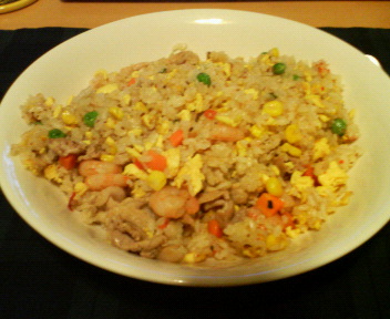 チャーハンに余ってた肉と、むきえびを入れたのでちょっと豪勢。