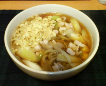 通勤時間が短いので、夕食に何を食べようか悩んでいるうちに、店に寄らず家に着いてしまい、またうどんにしました。おとといはつゆ作りすぎて(しかも濃い)失敗したので、今日は控えました。