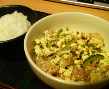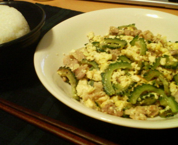 自己採点はゴーヤも程よい苦味で80点。作りすぎの量が次回の課題ですね