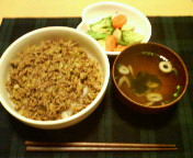 どうでしょう? ひき肉の余分な油もアクも全部流れてしまってヘルシーだし、味は同じだし食べるのラクだし。結局腹ん中入っちまったら同じでしょ。あ~ぁせっかくやる気になったのに。書かなかったけど、こないだカツ丼失敗してからやっと立ち直ったのに…。まさかの2連敗。