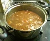 大量在庫のにんじんを一気に消費したいが入れすぎると大量になってしまう。結局悩んでにんじん1/2本、玉ねぎ1個、じゃがいも2個を使用。前回よりは控えめですが、3回分くらい出来てしまいました。今回はマッシュルームを忘れずに入れたものの、福神漬けを買い忘れました。わざわざ買出しに行ったのに。肉も柔らかくて、味は80点くらいだけど、カレーって連続だと飽きるよね。実家に帰る前に消費できるだろうか?